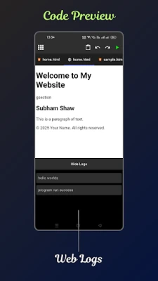 WebDeck is a mobile phone web ide for HTML , Css(Cascading Style Sheet) and js(JavaScript), to code a website on your phone and test and run right there offline.